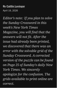ARE YOU KIDDING ME??????? Not once did It occur to me that the NY Times had made a mistake! I mean, it’s the NY Times for f—k sake!! Who’s their editor, some Gen. Z chick drinking a matcha latte? I’m suing Will Shortz! Why isn’t this on the news? This is a constitutional crisis!