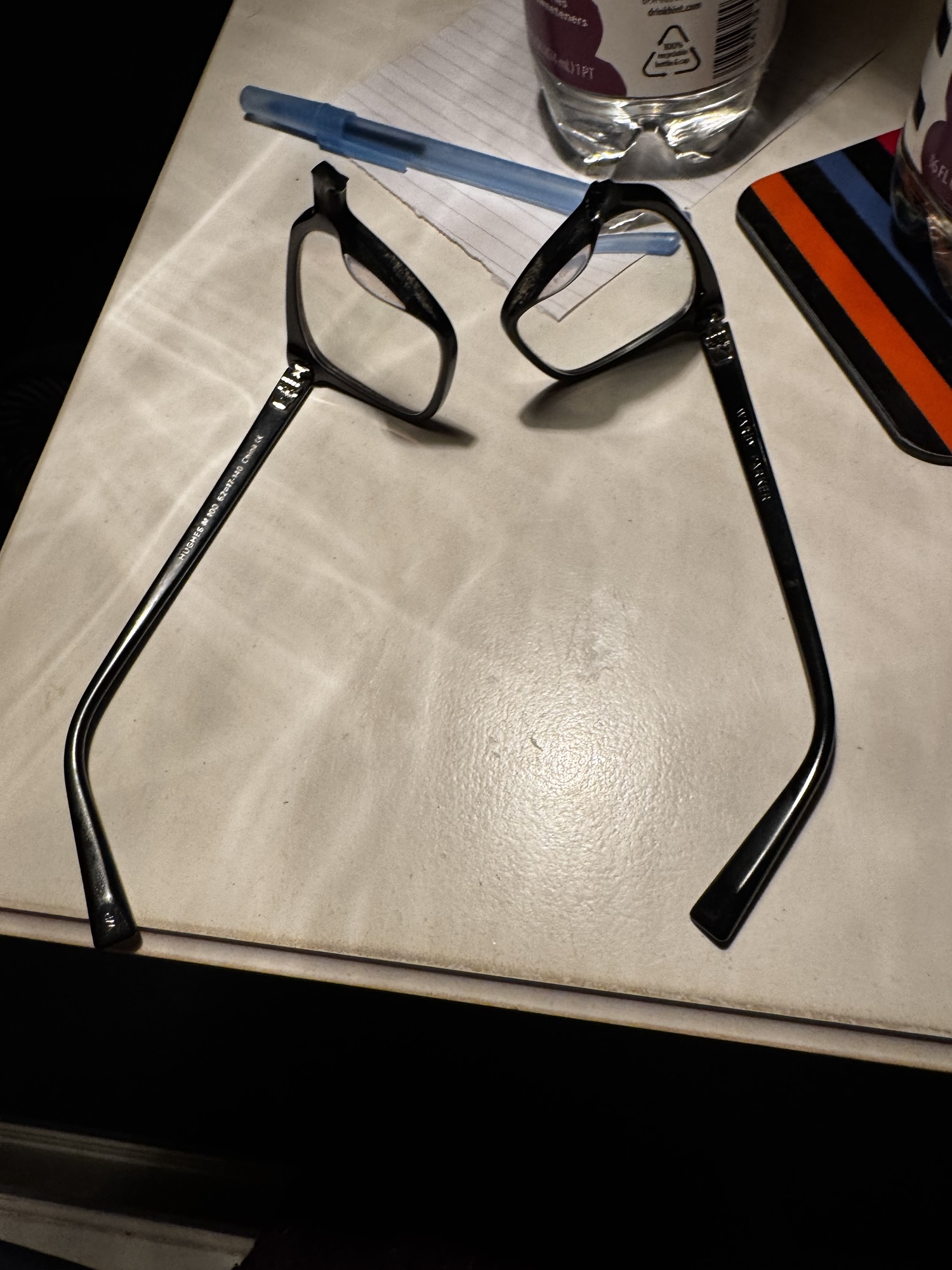 I tried fixing them with what I had on hand- tape, Gorilla Glue, string- nothing was working. It’s now close to 10:00PM so I decided to Door Dash Crazy Glue. It cost close to 20.00 for a 4.99 tube of Crazy Glue but within 30 minutes it was delivered to my door- priceless!! It took me about an hour and several phone calls to my sister but I eventually got it to work. The mend was far from invisible and I got Crazy Glue all over the lenses but it didn’t matter because I only needed them for the outside and rare chance I needed to leave in a hurry.